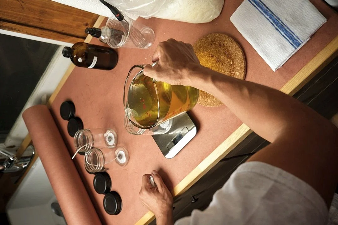 I'm a certified aromatherapist. So I have a background in herbs in essential oils. And so it came very natural to do it. I've been blending different scents for a while now. Maybe . . . 10 years. And it started as a hobby like, like you mentioned, like everyone else, just being alone in the cabin, and not having any internet or TV available and wanting to do something creative. And I developed a candle collection.